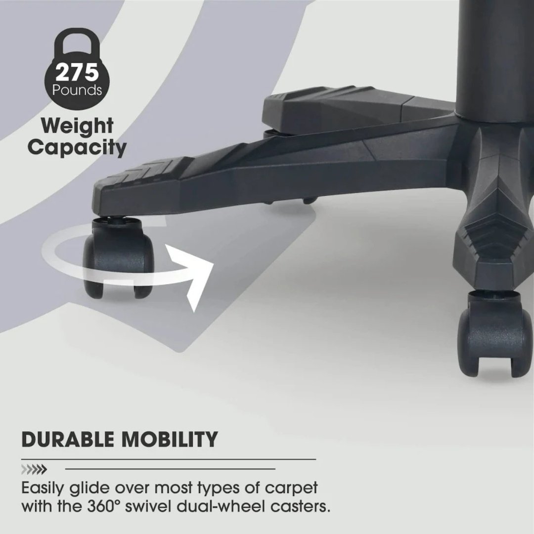 The adjustable armrests provide customized positioning to reduce strain on your shoulders and wrists, while the padded seat ensures maximum comfort even during extended use. A sturdy base with smooth-rolling caster wheels allows effortless mobility across different floor types without scratching surfaces. The chair’s height adjustment feature makes it suitable for users of varying heights and desk setups.
